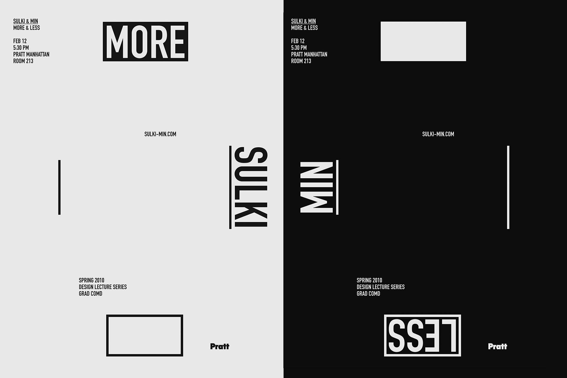 More or Less is a poster for Sulki & Min’s lecture at Pratt Institute, Graduate Communication Design Department. It was a part of Pratt’s Design Lecture Series in Spring, 2011.